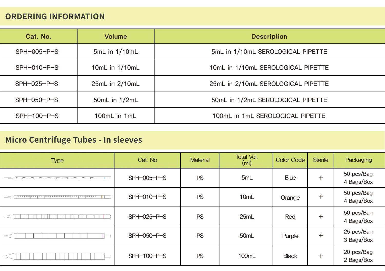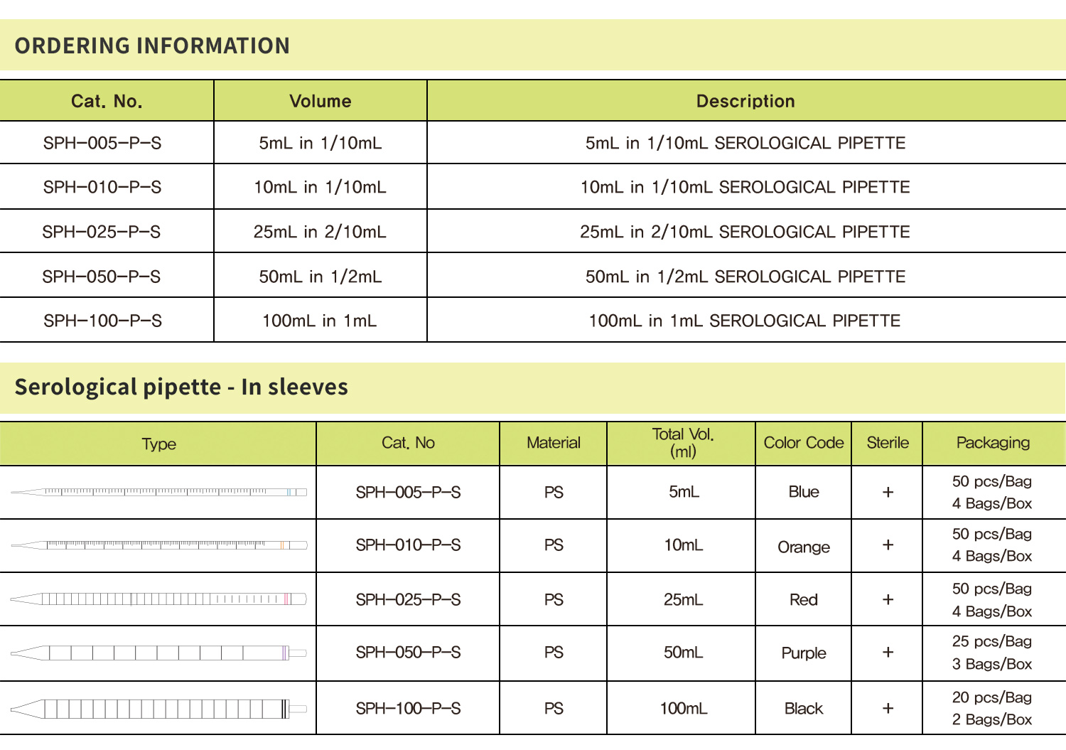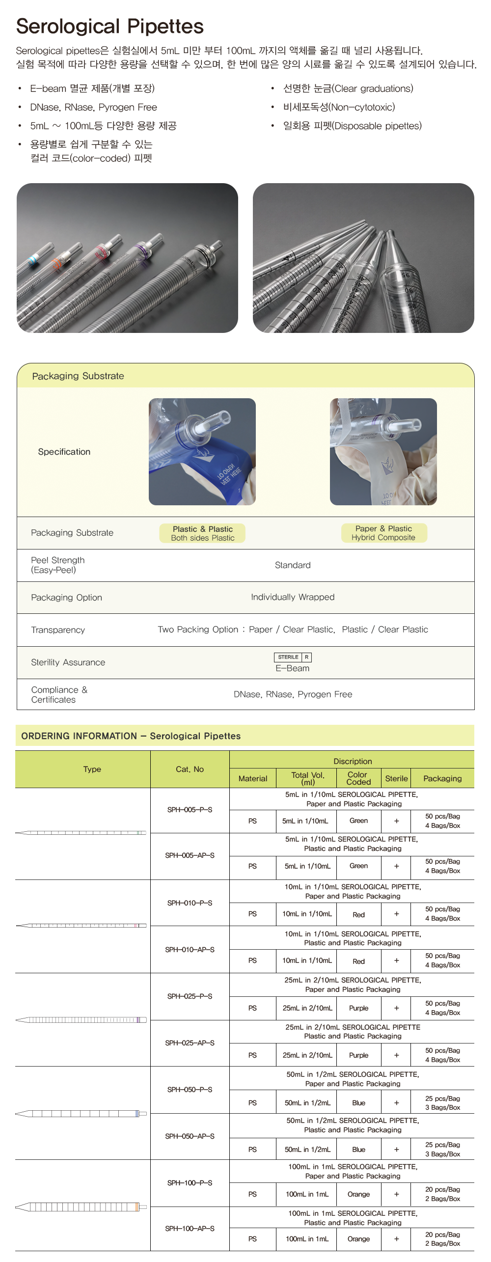 - 5mL, 10mL, 25mL, 50mL, 100mL 피펫 팁은 초음파 융착(supersonic wave welding) 방식으로 튜브와 결합