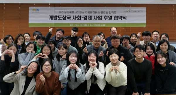 (재)굿네이버스 글로벌 임팩트(대표 현진영)는 이달 16일 ㈜바이온라이프사이언스와 개발도상국 사회/경제발전 지원을 위한 후원 협약을 체결했다고 밝혔다.