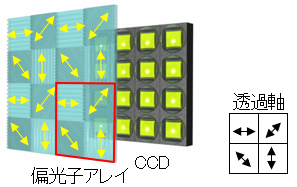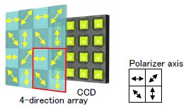 미세한 크기의 편광 필터가 통합되어 CCD 이미지 센서 앞에 배치됩니다.