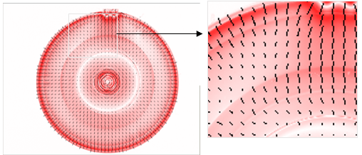 복굴절 데이터(위상 변화 및 축 방향)는 각 지점에서 정량적 데이터로 나타납니다.